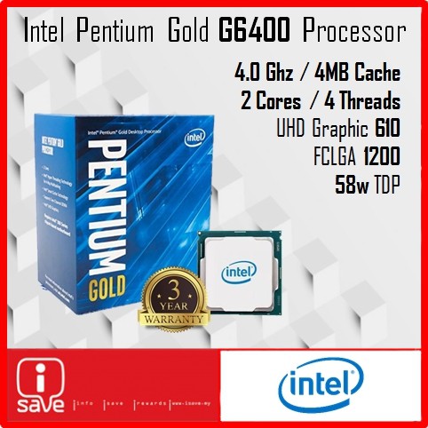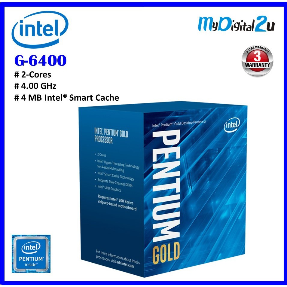 Intel Pentium Gold G6400 14nm Lithography Cpu Processor Socket Lga1200 G6400 2 Core 4 Threads 4 8ghz Tdp 58w Shopee Singapore